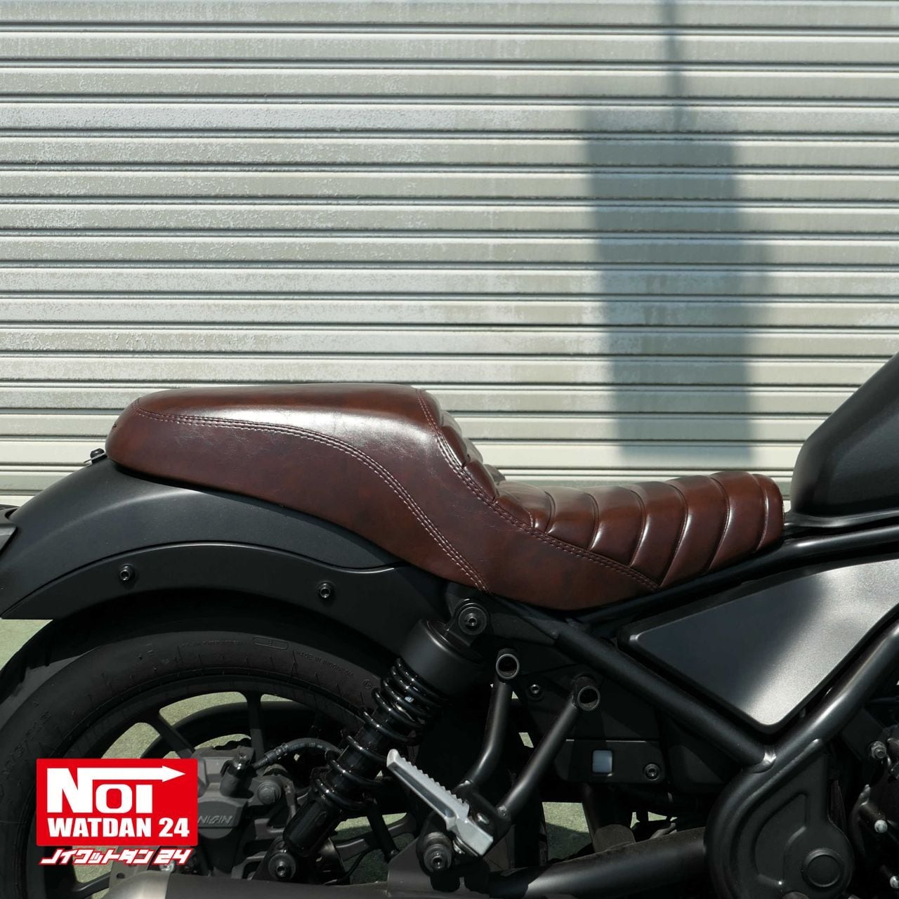 お尻をしっかりとホールドする段付き加工と車体にマッチする流れるようなデザインのタックロールシートです!