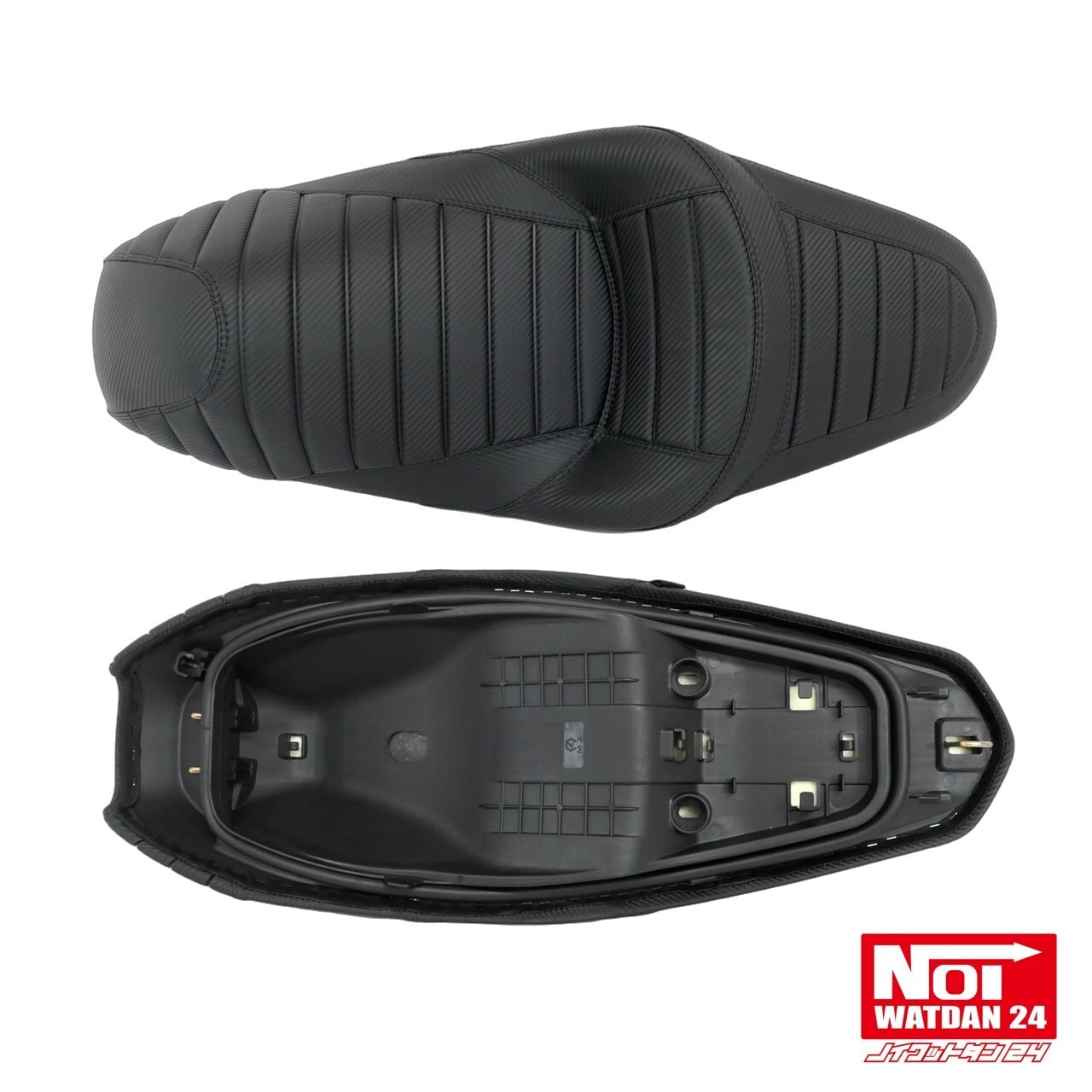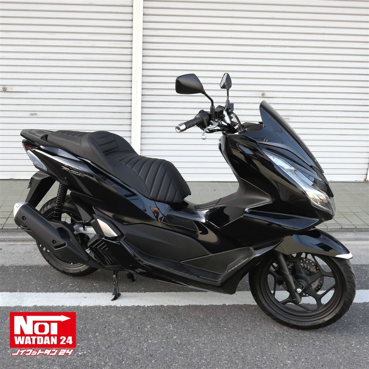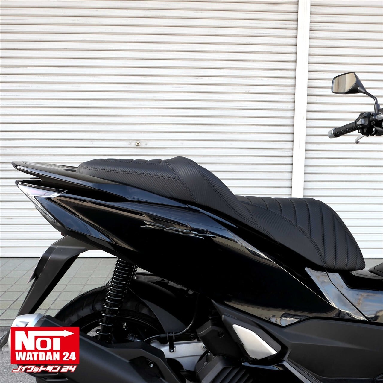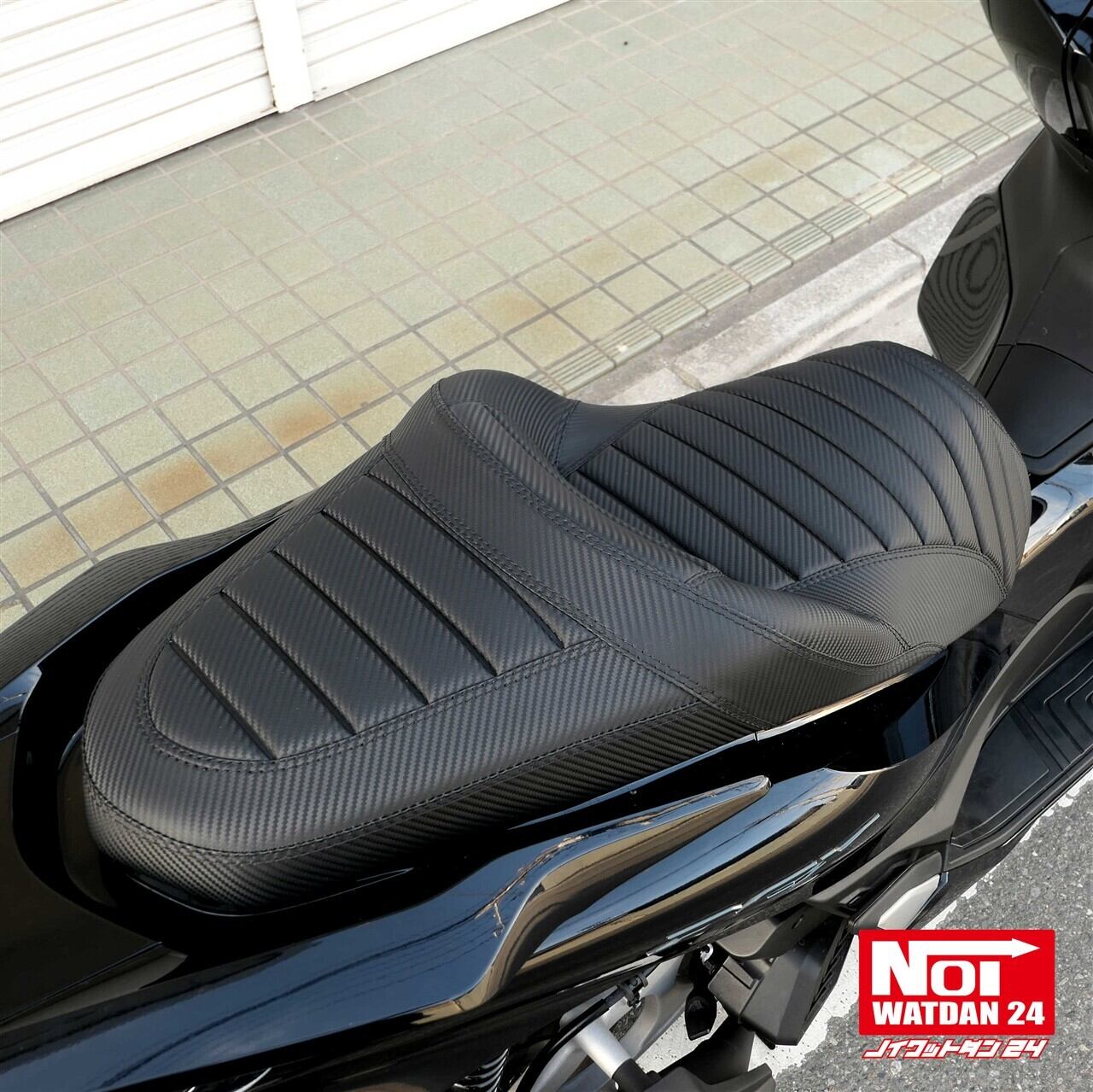 ローダウンと段付き加工を施したタックロールシートにカーボン調レザーでスタイリッシュな仕上がりのPCX用カスタムシート。